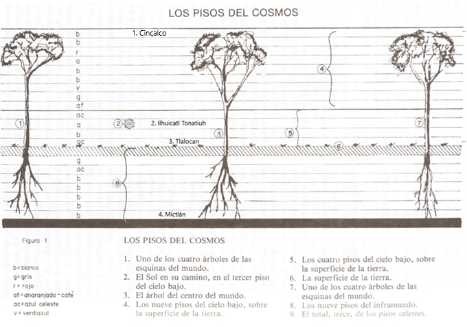 Gallegos (1991), López-Austin (2008) e Ibarra, (2009) consignan que los nueves pisos de Chicnauhtopan y los cuatro de Tlaltípac (“Sobre la tierra”) daban el total de trece, número de lo luminoso, masculino, caliente, seco (Fig. 3). Para Gallegos (1991):