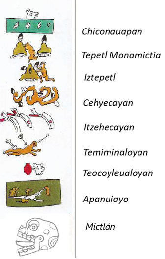 [5] Según Miguel León-Portilla, eran varios los nombres de este lugar, entre ellos tenemos: Tocenchan tocenpopolihuiyan (nuestra casa común, nuestra común región de perderse;  Ximoayan (lugar de los descarnados; lugar y paraje donde nadie sabe, el eterno olvido). León-Portilla, 1997.